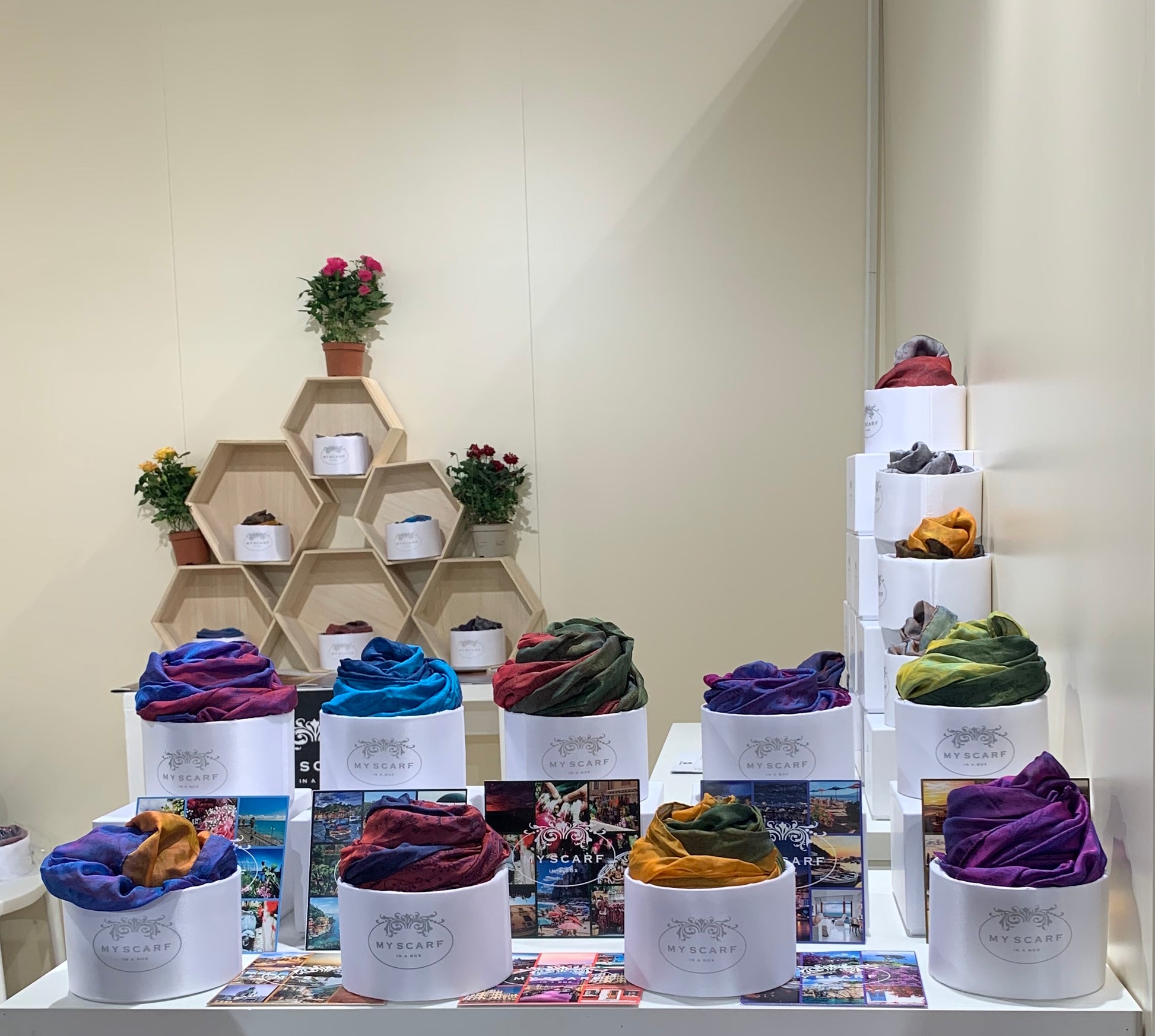 Crafted in limited edition with gift packaging and a gift card that you can fill with the name of a person you would like to make a present for. The oval box can remain as a box for your beautiful scarf.