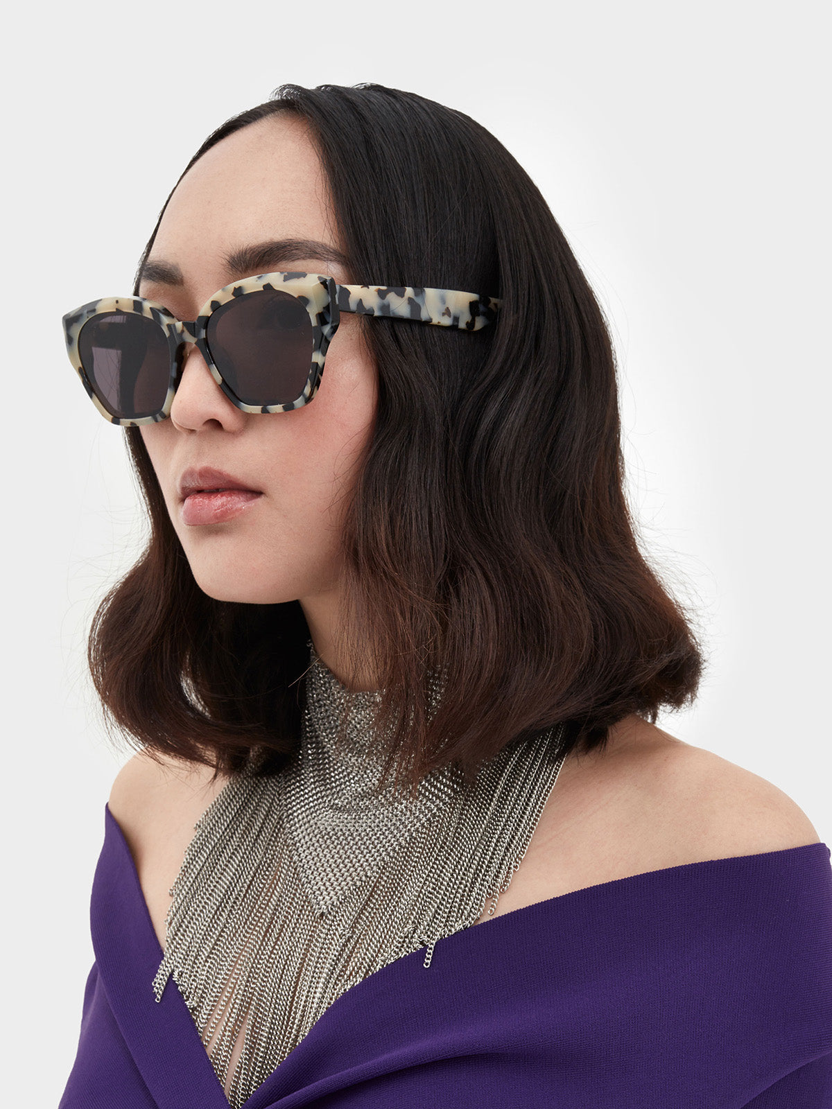 WHITE MARBLE ACETATE FRAME - GREY LENSES