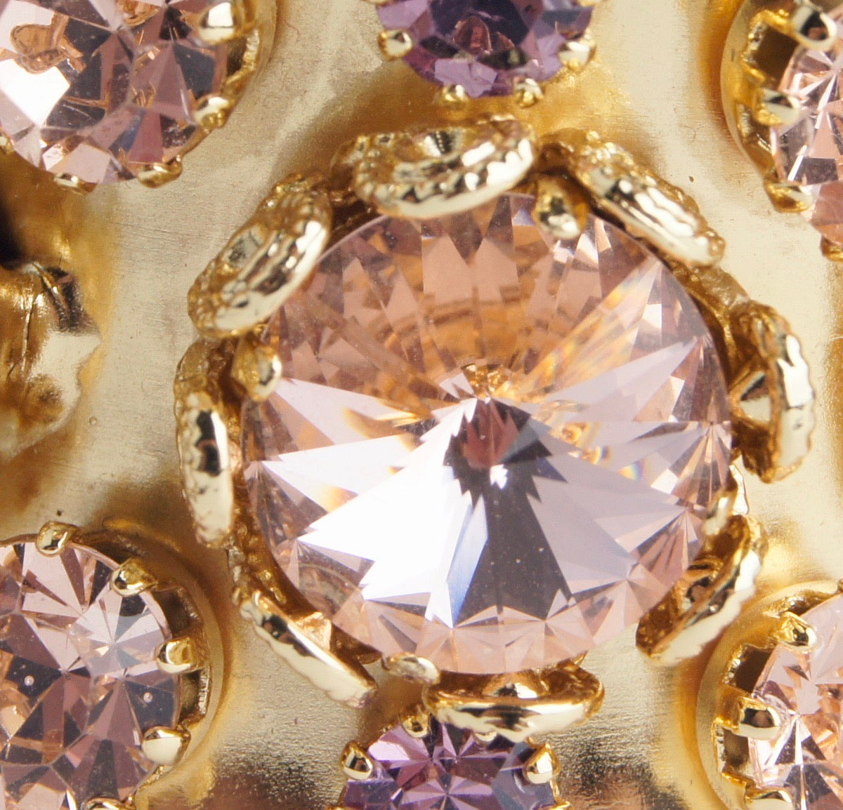 The bangle is made of brass with plated in gold, white gold, rose gold or gunmetal.  All crystals are Swarovski and/or Preciosa.