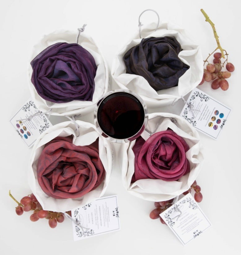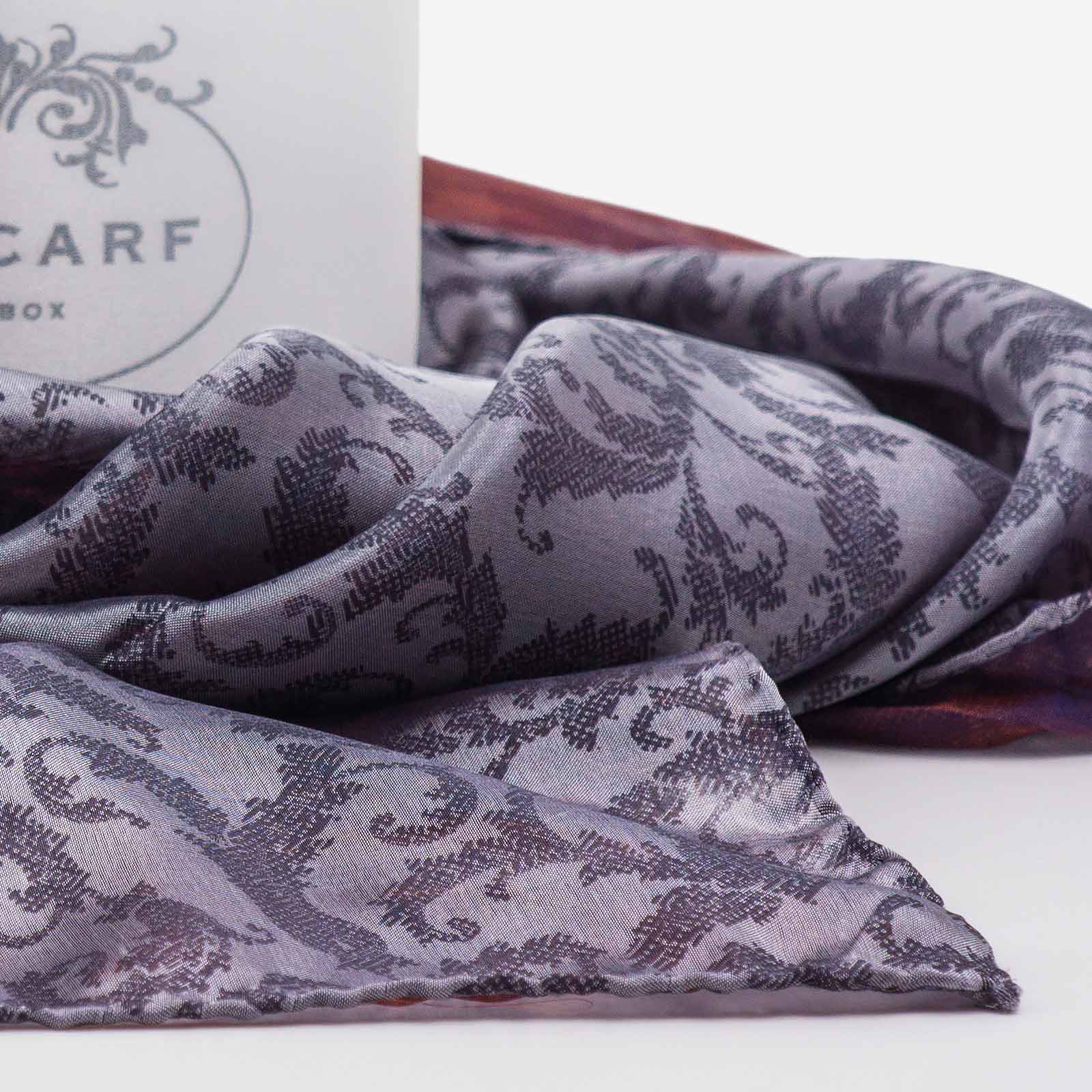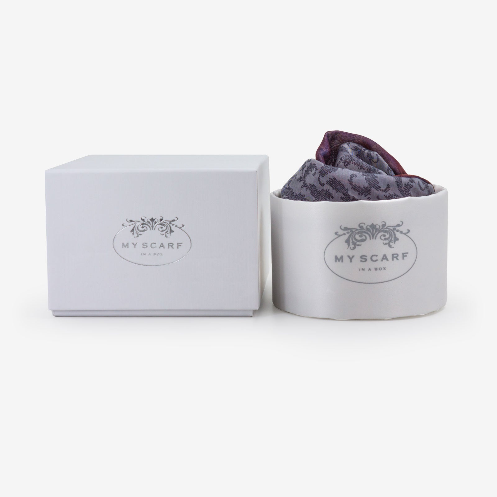 Silk and modal double-sided scarf with printed floral motifs. Shades of Intense Purple and Silver as a tribute to the Tuscan capital and its winery tradition.