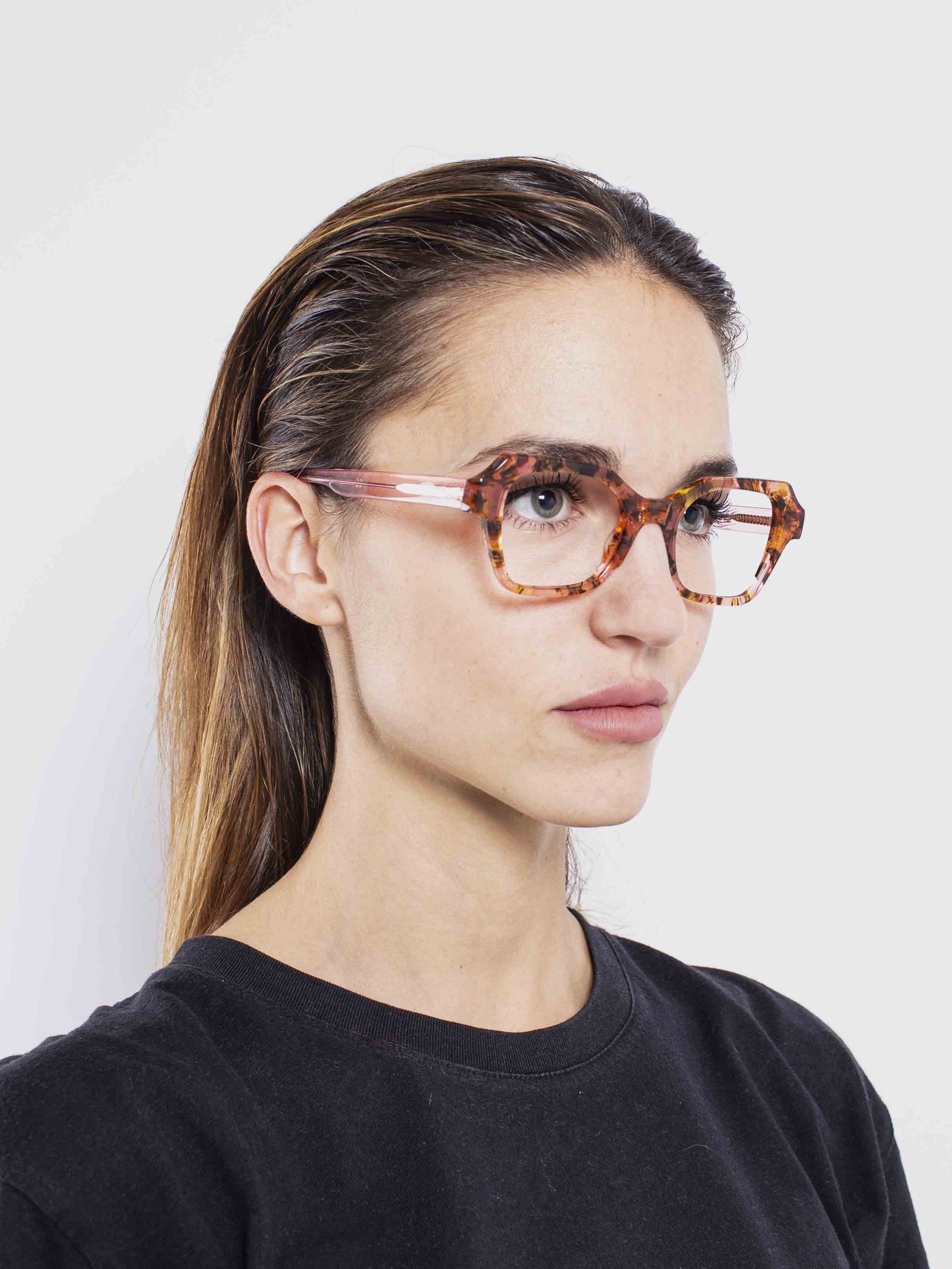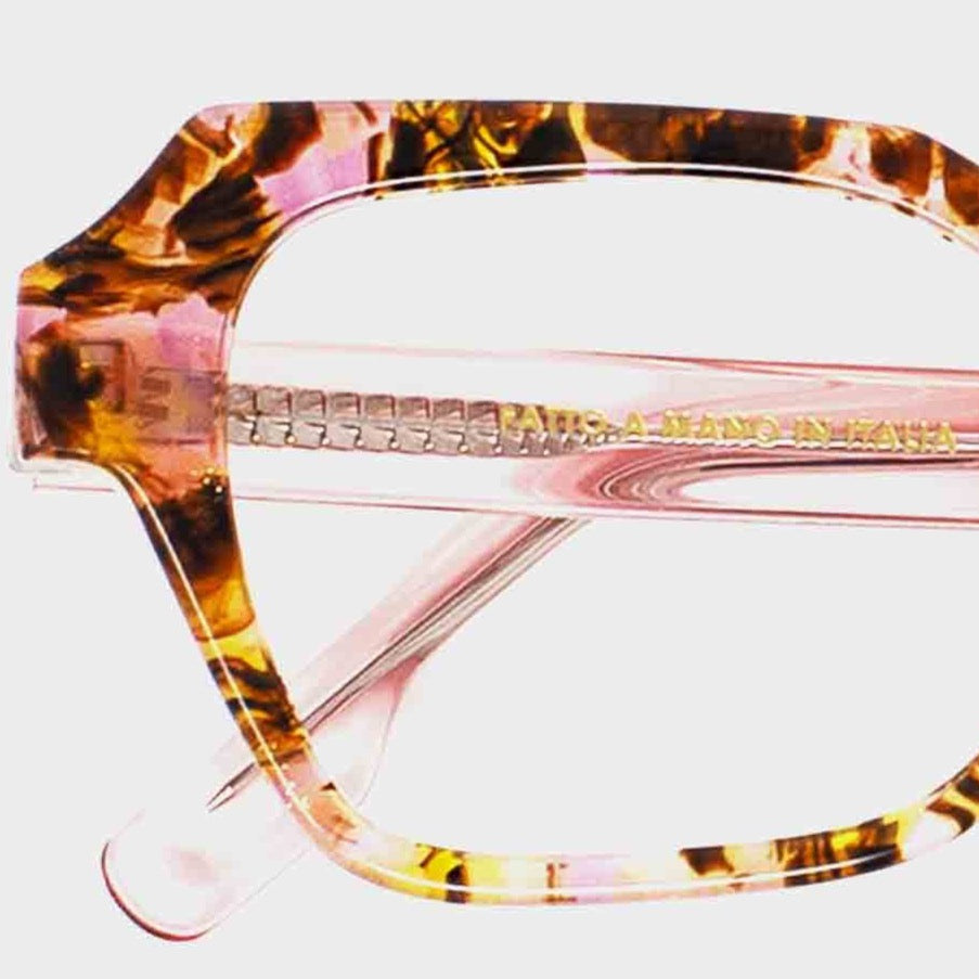 Frame material: The collection is made 100% of Mazzucchelli's acetate with a high content of cotton. The collection is characterized by handmade bondings realized in a little laboratory in Italy.
